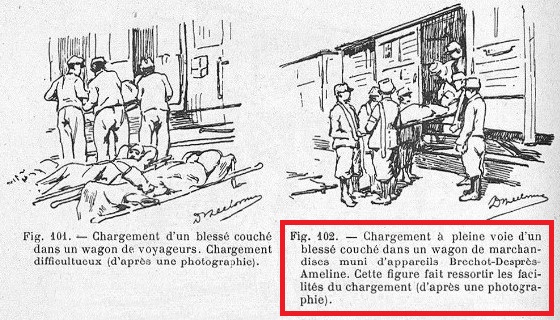Le Médecin Auxiliaire chargé des évacuations sur Epinal par train de ravitaillement a signalé à plusieurs reprises que les 6 voitures aménagées constituées par des fourgons à 2 essieux ne procuraient qu’une suspension extrêmement mauvaise, rendant des plus inconfortables le transport des blessés relativement graves évacués sur Epinal. Devant ces comptes-rendus, le Médecin-Chef de l’HôE demande au Médecin-Chef des Etapes de vouloir bien obtenir de la commission régulatrice qu’au moins un des 6 wagons aménagés soit remplacé par un fourgon de grande vitesse à 3 essieux, aménagé avec des appareils Bréchot et pouvant transporter 12 blessés au lieu de 9, d’accès facile et de suspension excellente d’après les dires des Médecins-Chefs des trains sanitaires qui en ont l’expérience. Cet unique wagon nous serait d’ailleurs en principe suffisant pour assurer les évacuations quotidiennes sur Epinal en dehors des périodes d’attaques.